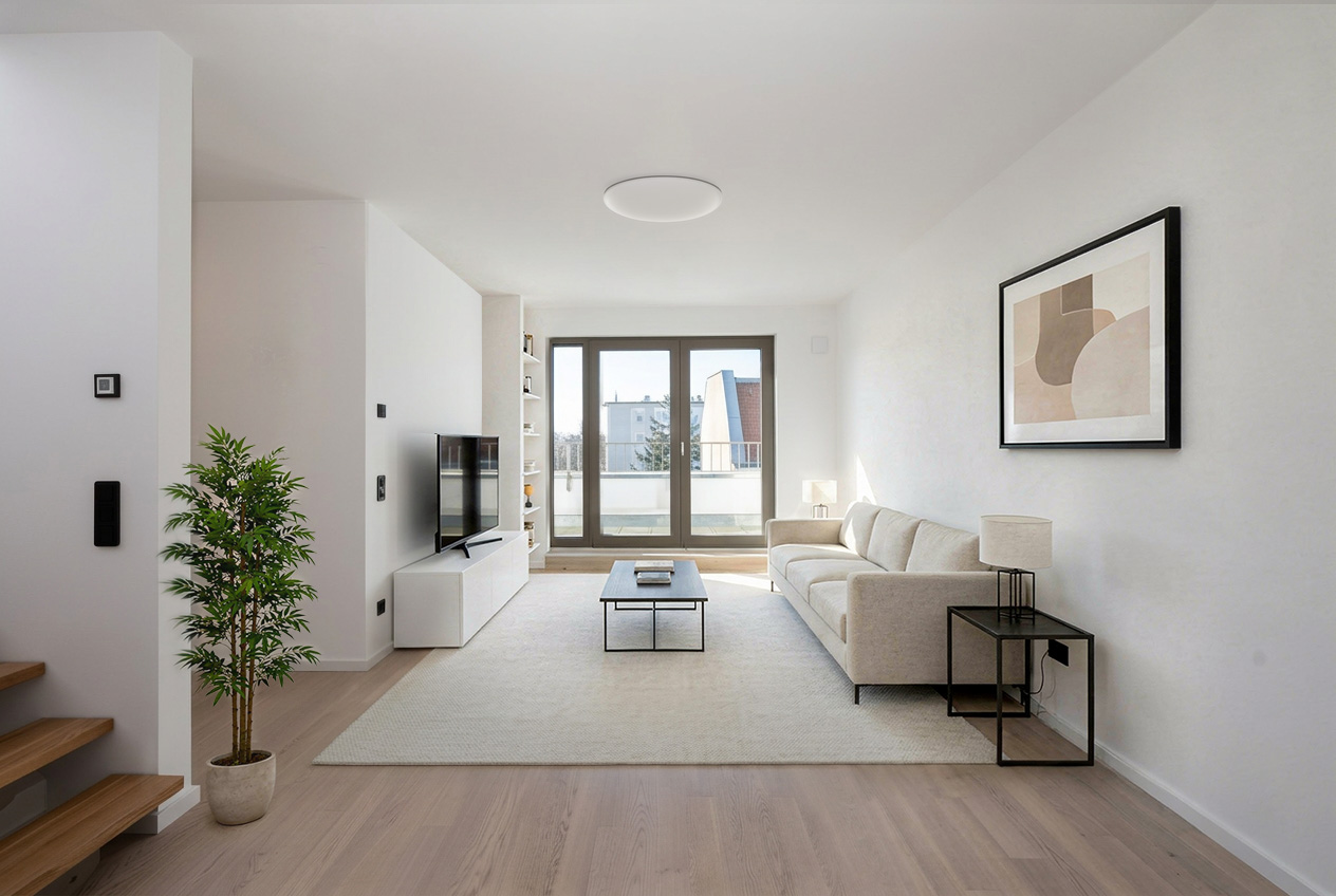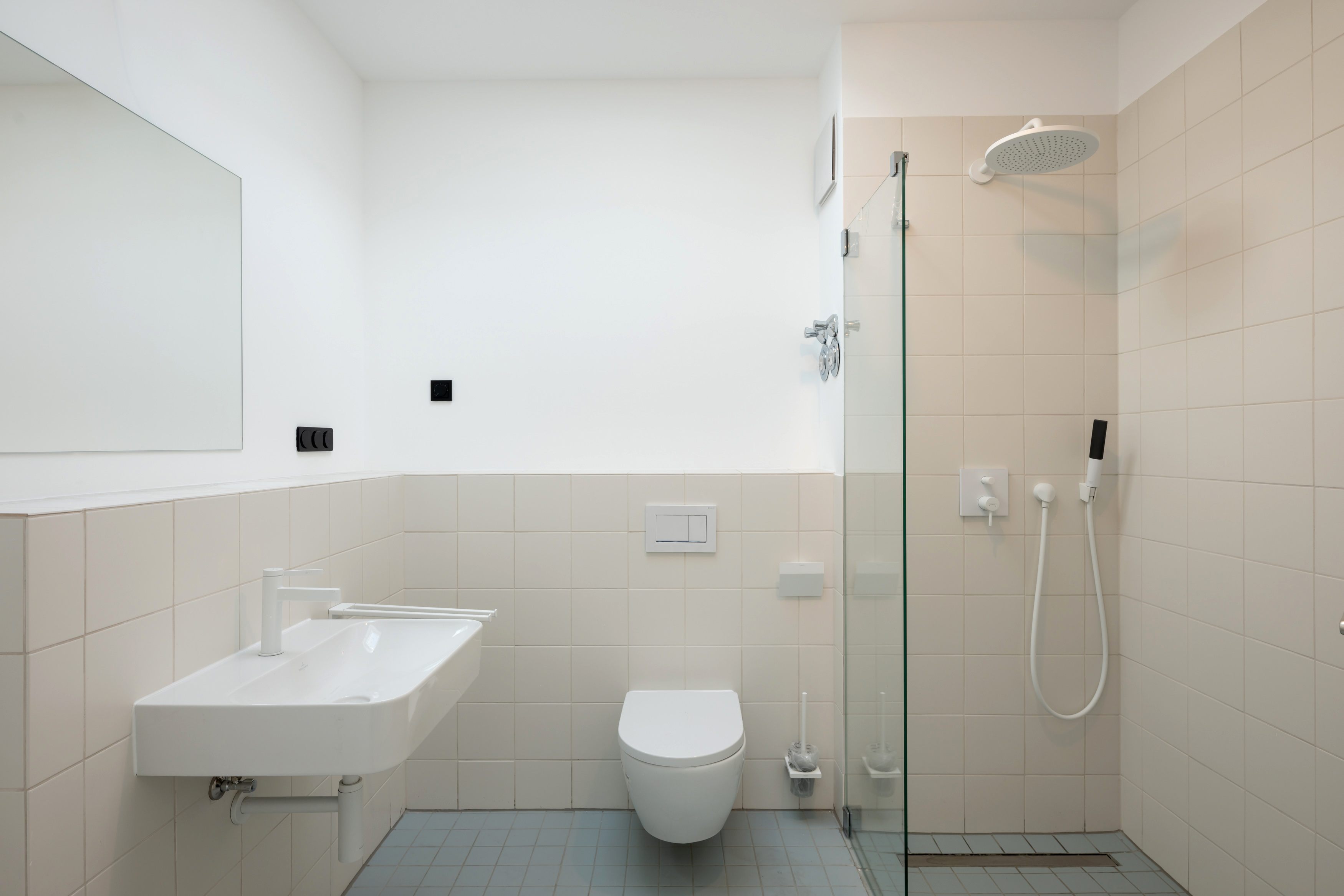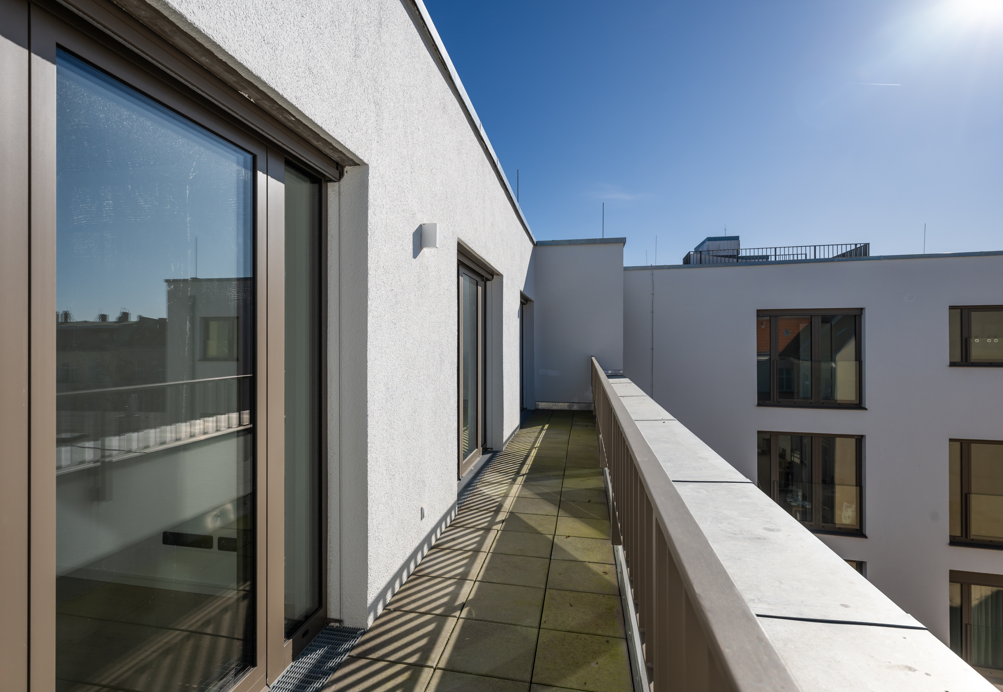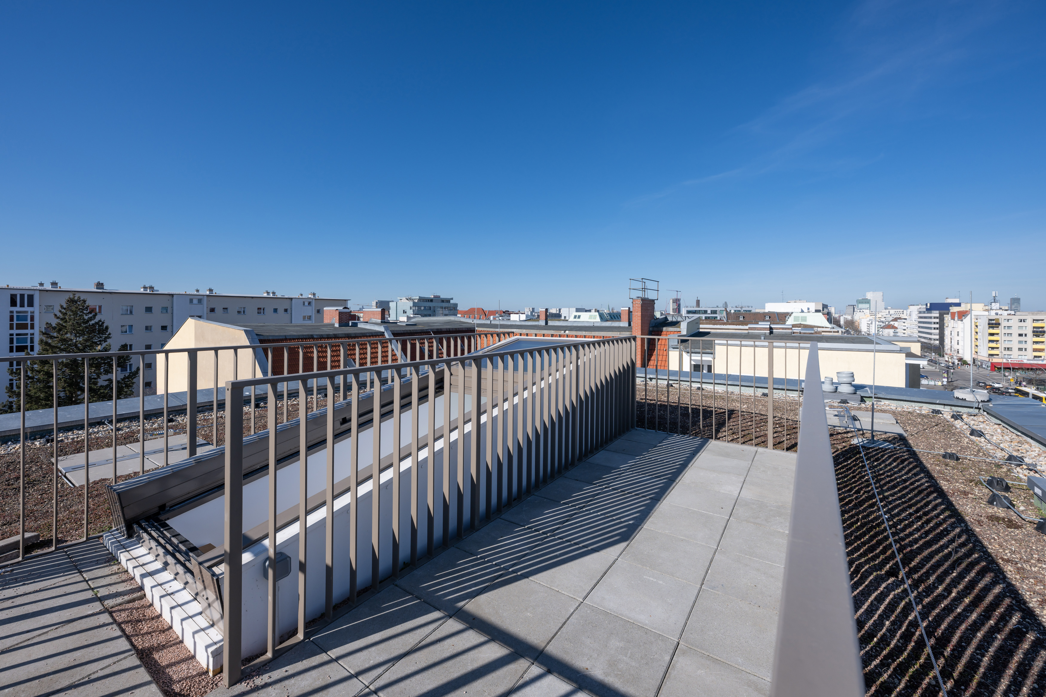 Die drei Terrassen umrahmen das Penthouse in unterschiedlichen Himmelsrichtungen und eröffnen vielfältige Außenbereiche mit Weitblick. Zwei Bäder, eines davon mit Dusche und ein weiteres als komfortables Bad für den täglichen Gebrauch, sorgen für hohen Alltagskomfort und machen die Wohnung auch für Paare mit erhöhtem Platzbedarf attraktiv. Der Erstbezug, die gehobene Ausstattung und Details wie ein eigener Kellerraum unterstreichen den hochwertigen Charakter dieses Penthouses in einem der beliebtesten Bezirke Berlins.