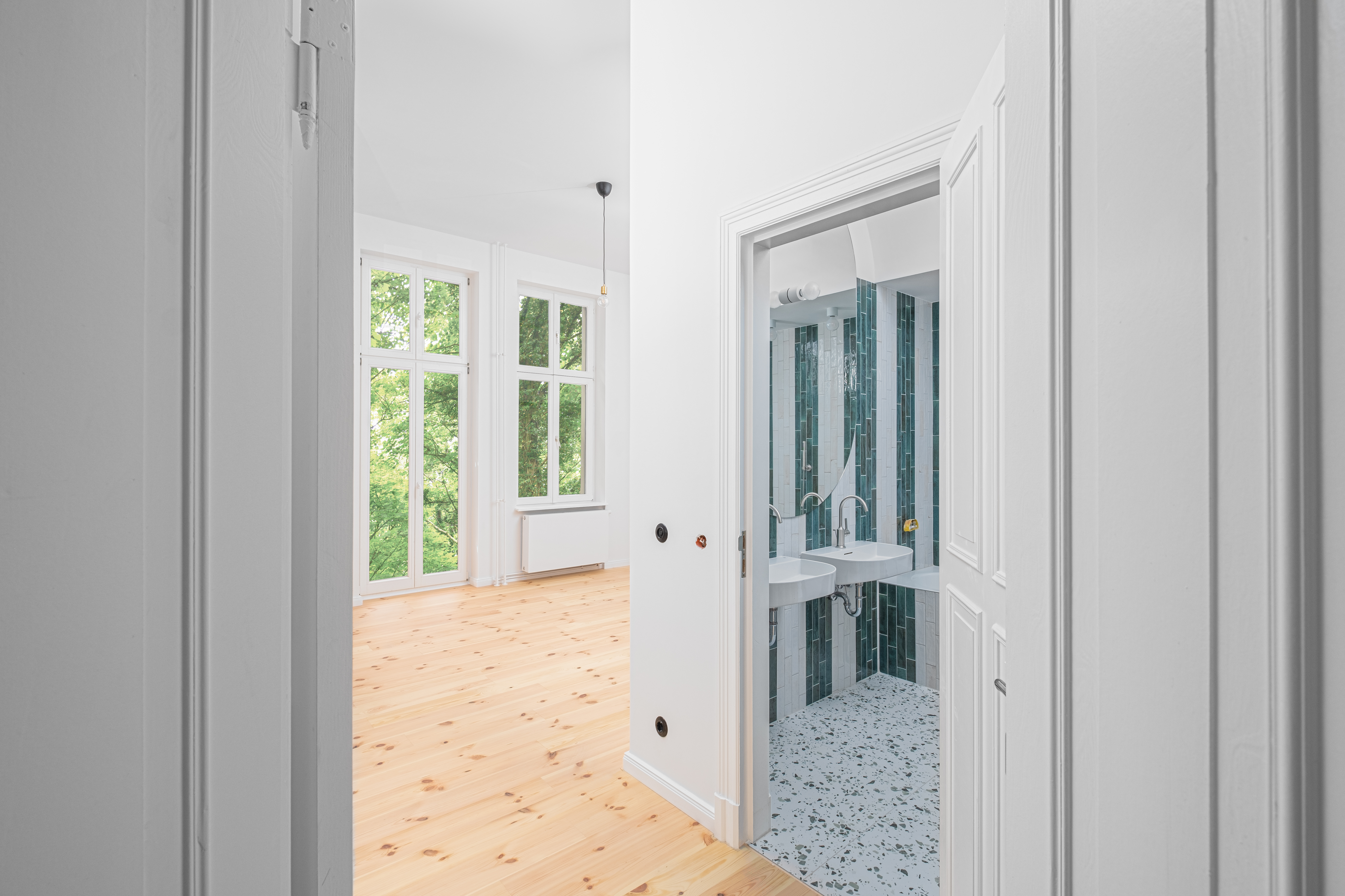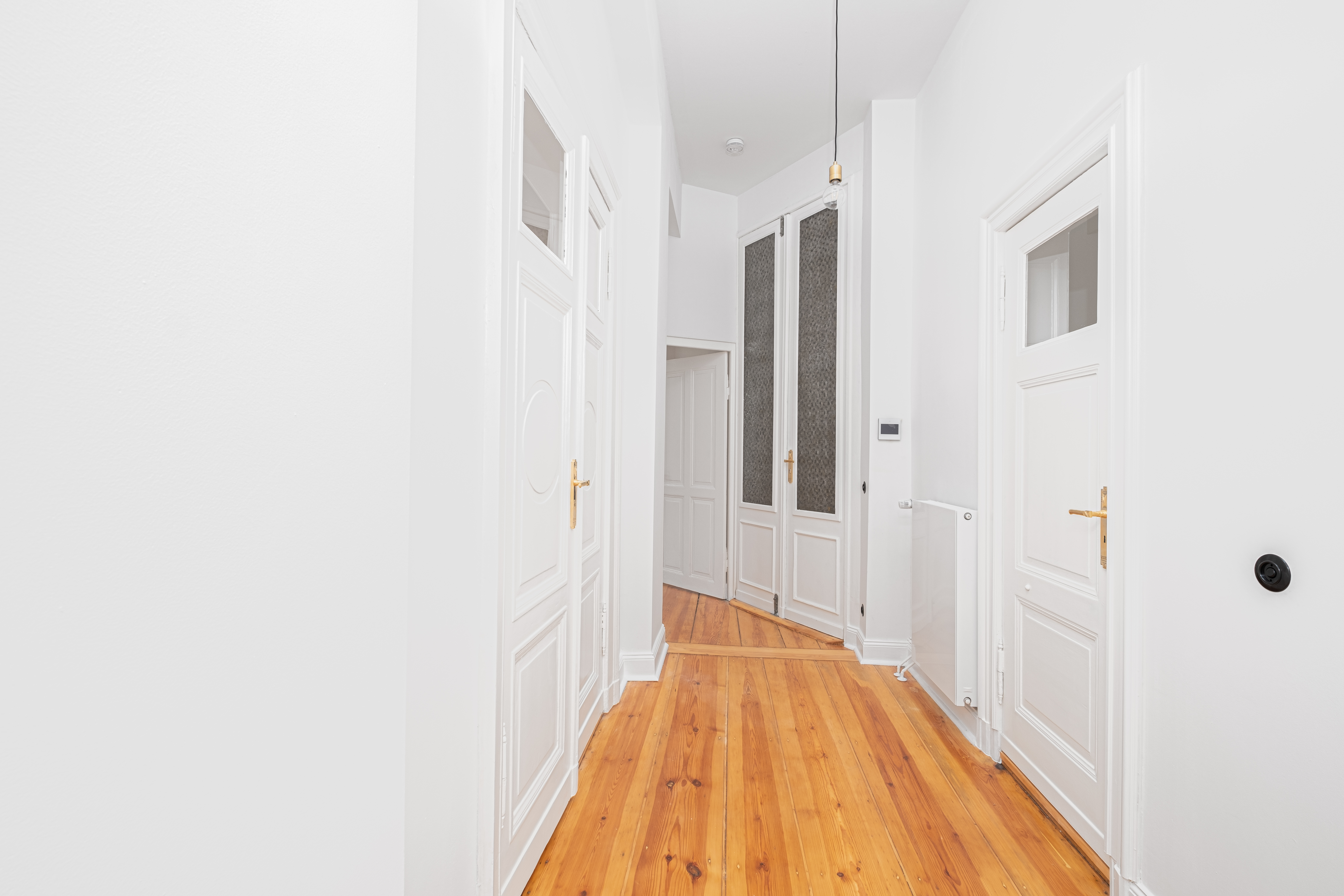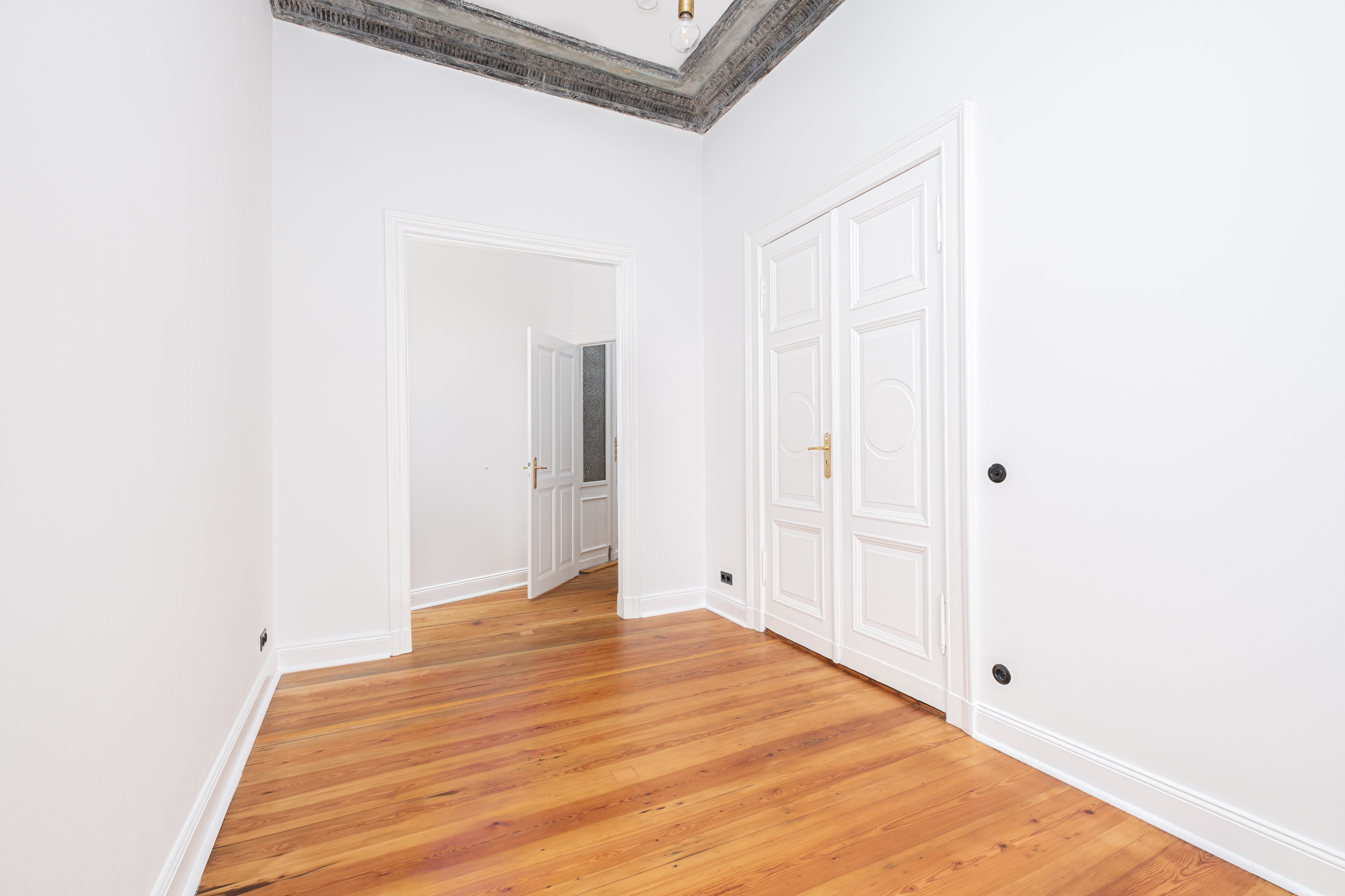 Diese herrschaftliche Altbauwohnung im ersten Obergeschoss begeistert mit ca. 148 m² Wohnfläche, aufgeteilt in 5 große Zimmer. Stuckelemente, Flügeltüren und ein alter Kaminofen unterstreichen den historischen Charme, während die frische Renovierung für modernen Wohnkomfort sorgt. Hohe Decken und große Fenster schaffen ein lichtdurchflutetes Ambiente.