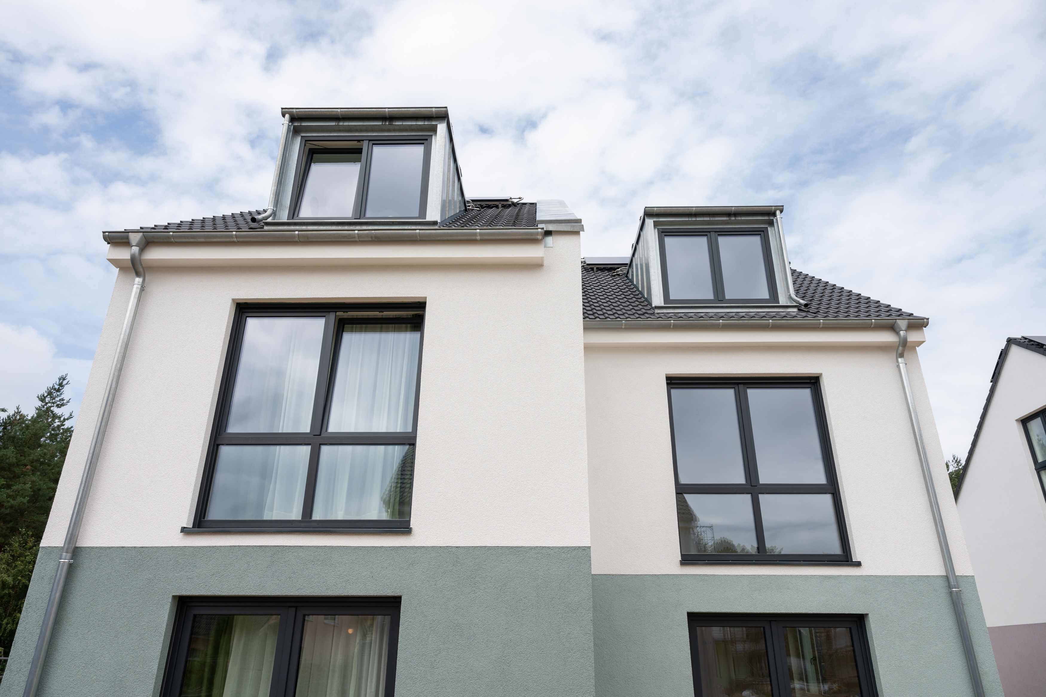 Das Haus wird als energieeffizientes Eigenheim der KfW 55 EE-Klasse gebaut. Die Energieversorgung zielt auf Nachhaltigkeit: Strom und Heizenergie werden über Kollektoren „auf dem eigenen Dach“ gewonnen und in einem Wärmepumpenspeicher gespeichert. Nicht benötigte Energie wird ins Stromnetz eingespeist. Durch diese Kombination aus Photovoltaik-Anlage und Sole-Wasser-Wärmepumpe erfolgt die Heizungs- und Warmwasserbereitung autark, also unabhängig von Gas- und Ölpreisen. Darüber hinaus verfügen Fenster- und Türelemente über 3-fach-Isolierung. Die E-Ladesäule an den Pkw-Stellplätzen direkt am Haus liefert einen weiteren Beitrag zu einer CO2-neutralen, emissionsarmen Energiebilanz.