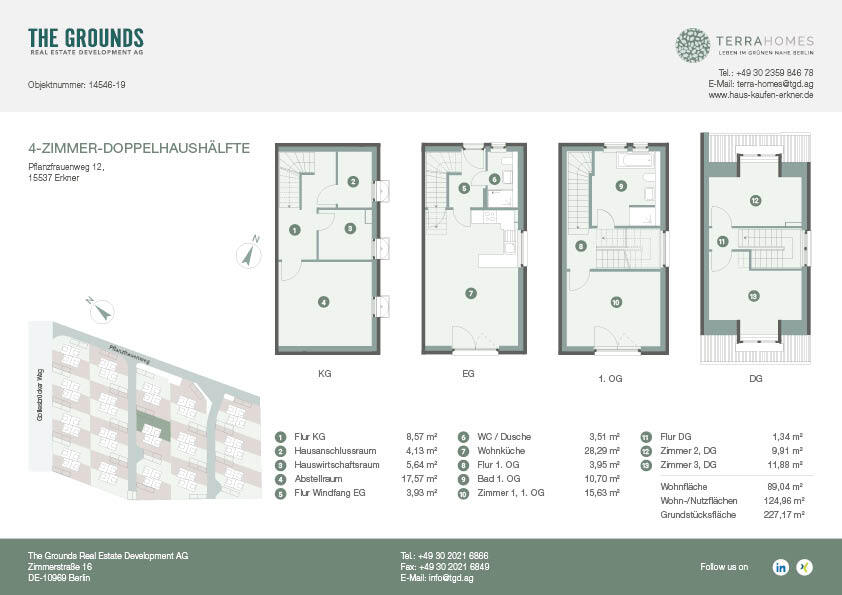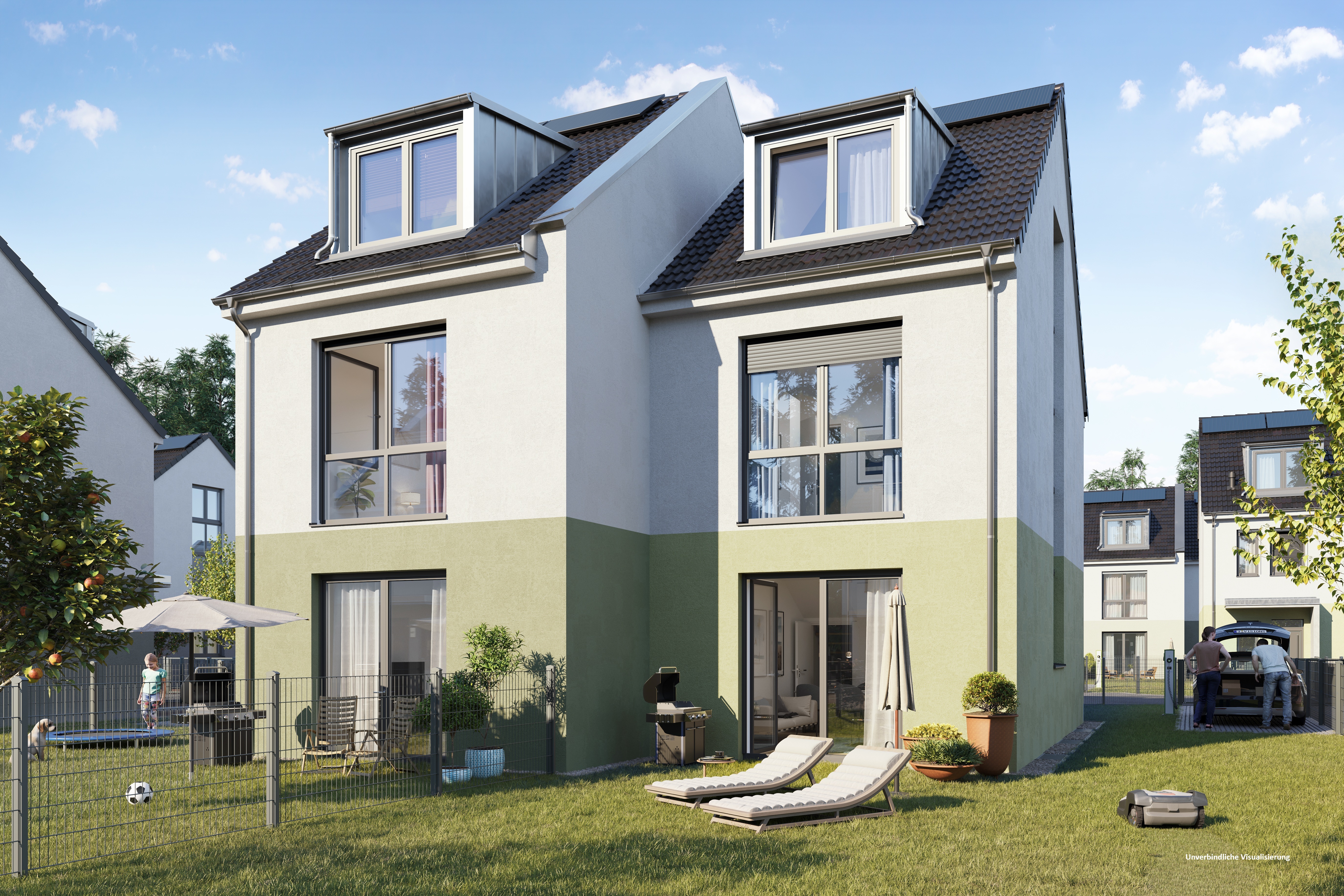 In der Doppelhaussiedlung „Terra Homes“ entstehen 34 energieeffiziente Doppelhaus-Einheiten, die ab April 2026 bezugsfertig sein werden. Ein besonderes Highlight des Projekts ist das innovative Energiekonzept der Häuser nach Effizienzhausstandard 55 EE, das für einen besonders niedrigen Energieverbrauch sorgt.