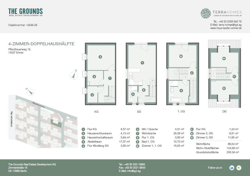 In der Doppelhaussiedlung „Terra Homes“ entstehen 34 energieeffiziente Doppelhaus-Einheiten, die ab April 2026 bezugsfertig sein werden. Ein besonderes Highlight des Projekts ist das innovative Energiekonzept der Häuser nach Effizienzhausstandard 55 EE, das für einen besonders niedrigen Energieverbrauch sorgt.