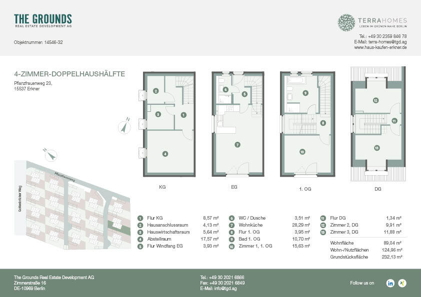 Die Häuser in Erkner-Hohenbinde sind ideal für junge Familien und Paare, die ins Grüne Umland ziehen, aber nicht auf den Komfort und die Infrastruktur der Metropole verzichten möchten. Auf einer Wohn-/Nutzfläche von ca. 125 m² bieten vier Zimmer auf drei Etagen, plus Untergeschoss, Platz und Rückzugsorte.