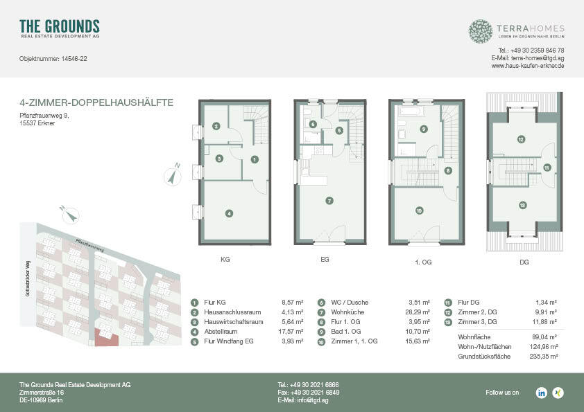 In der Doppelhaussiedlung „Terra Homes“ entstehen 34 energieeffiziente Doppelhaus-Einheiten, die ab April 2026 bezugsfertig sein werden. Ein besonderes Highlight des Projekts ist das innovative Energiekonzept der Häuser nach Effizienzhausstandard 55 EE, das für einen besonders niedrigen Energieverbrauch sorgt.